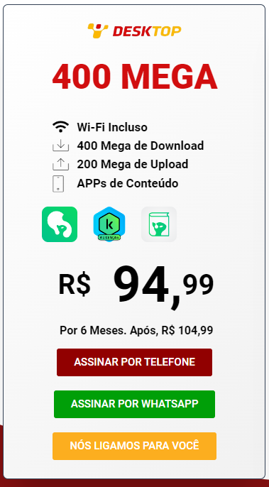 Com a demanda crescente por internet rápida e confiável, encontrar o provedor certo é essencial. Na Desktop Fibra Óptica, entendemos a importância de uma conexão estável tanto para empresas quanto para residências. Nossa fibra óptica lhe oferece velocidade e confiabilidade incomparáveis, permitindo que você navegue, faça streaming, jogue online e trabalhe sem interrupções.